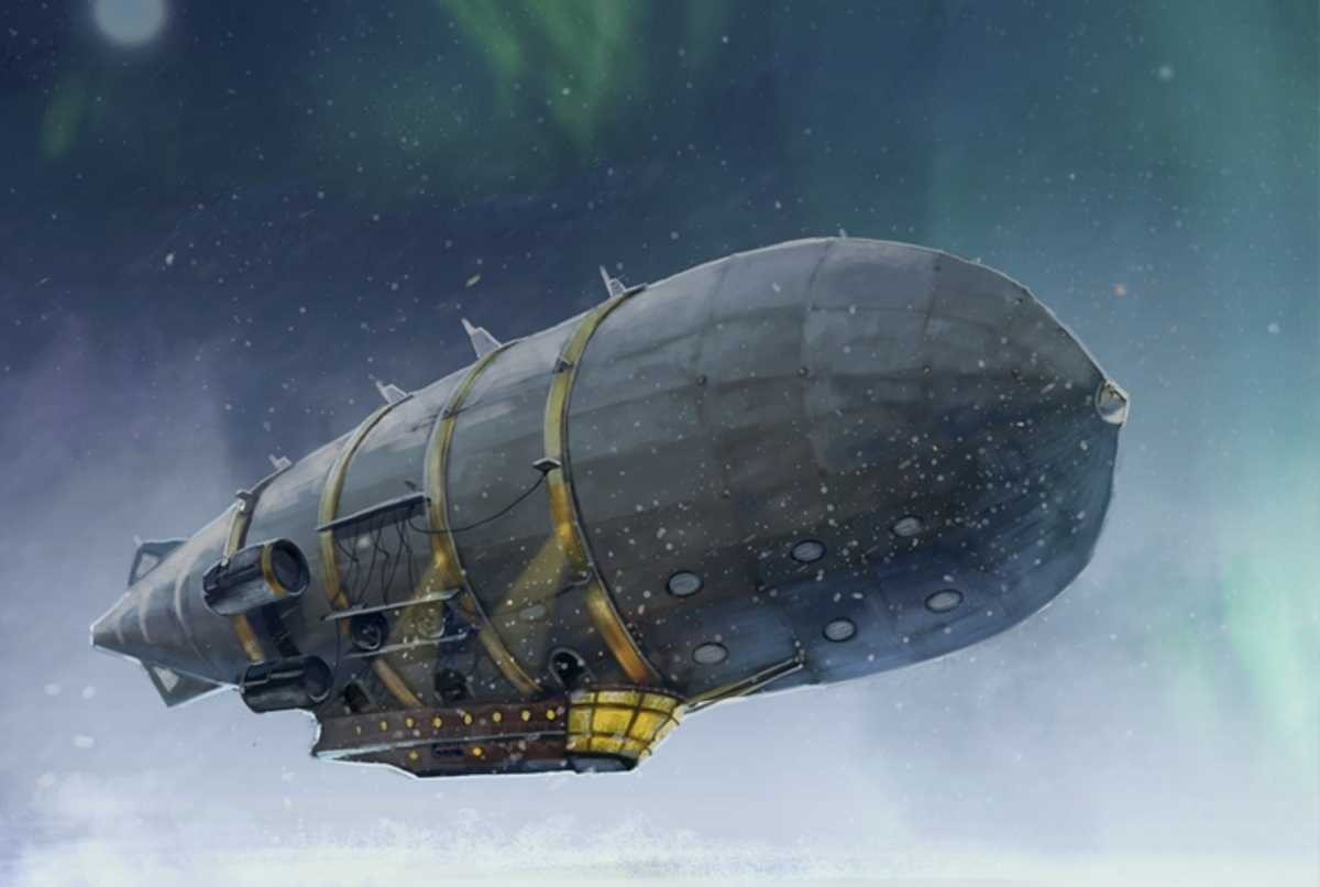 Дирижабль приближается к Северному полюсу.